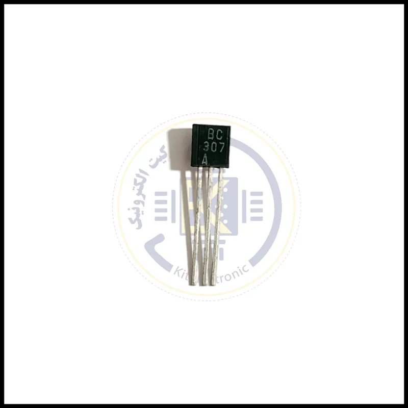 قطعه: BC307A، دستهبندی: ترانزیستور PNP، ولتاژ: 45 ولت، جریان: 0.1 آمپر، پکیج: TO:92.